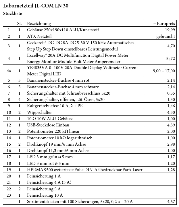 Stückliste Hier als PDF Version