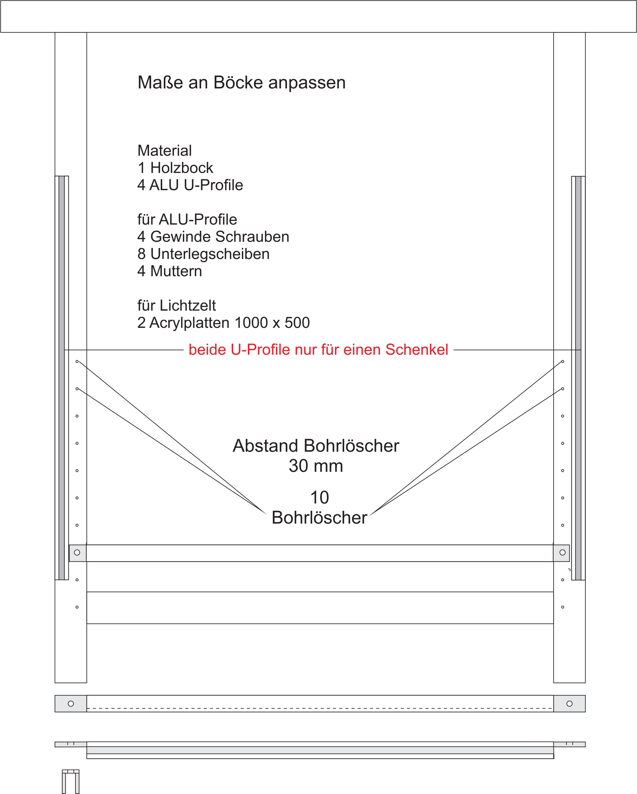 Das Lichtzelt besteht aus einfachen Malerböcke für etwa fünf Euro das Stück, plus zwei Acrylplatten.