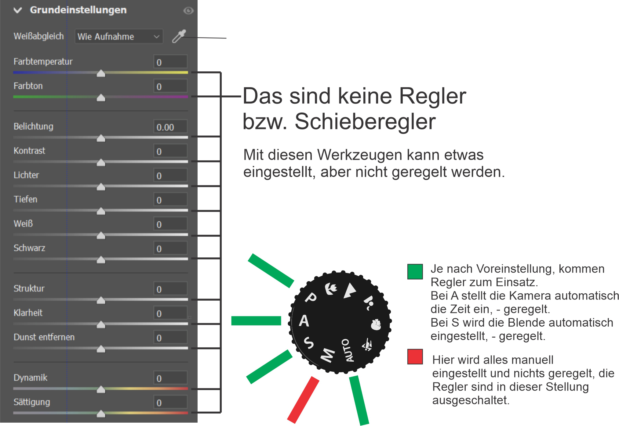 Hilfestellung: Regler = automatisch Einsteller = manuell