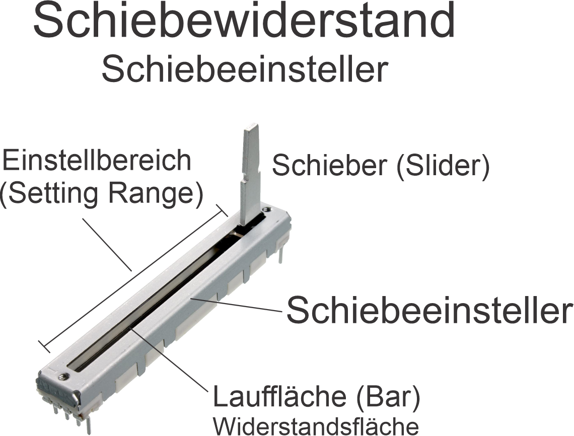 Dies ist ein Schiebewiderstand oder auch Schiebepotentiometer oder ein Schiebepoti oder Einstell(schiebe)widerstand und dient zur manuellen Einstellung!
